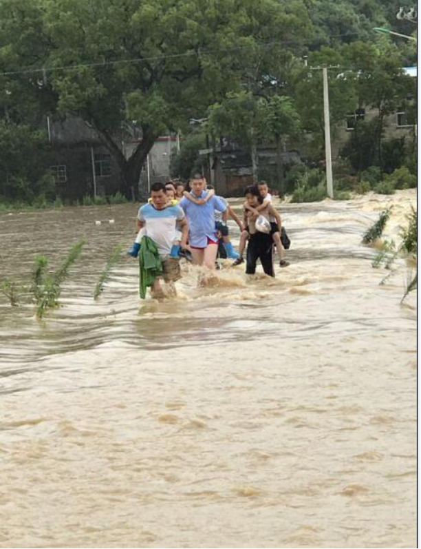 险情就是命令,救灾刻不容缓,洪峰浪尖,方显党员本色,江西省浮梁县王港乡基层党员干部自组织在洪水中奔跑十几趟,只为背起一个个无助的留守儿童。(江西省浮梁县纪委)