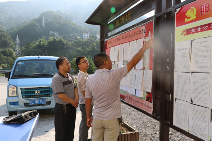 省纪委巡查督导组在神农架林区红坪镇红河村检查贫困户精准识别工作情况。