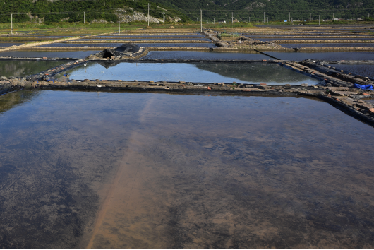 第一步:纳潮。纳潮实际上是生产原盐的原料——“海水”的引进过程。制盐行业有着“旱晴天纳潮头,平时纳潮中,雨后纳潮尾,夏秋季纳夜潮”的说法。往常情况下,如果天气好,盐民们凌晨三四点就要出工,将早潮的海水引进盐田。