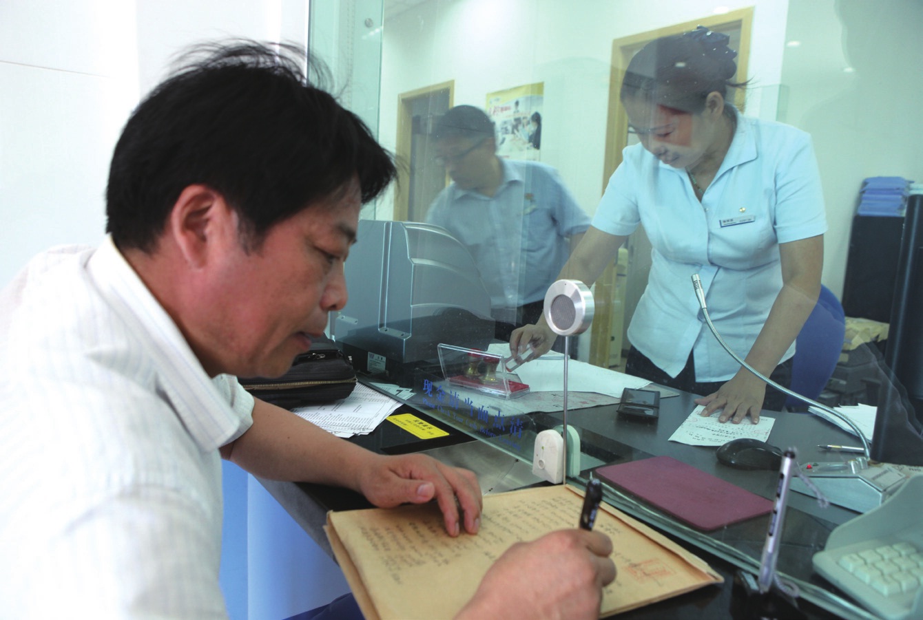 王洪祥(左一)在银行查账