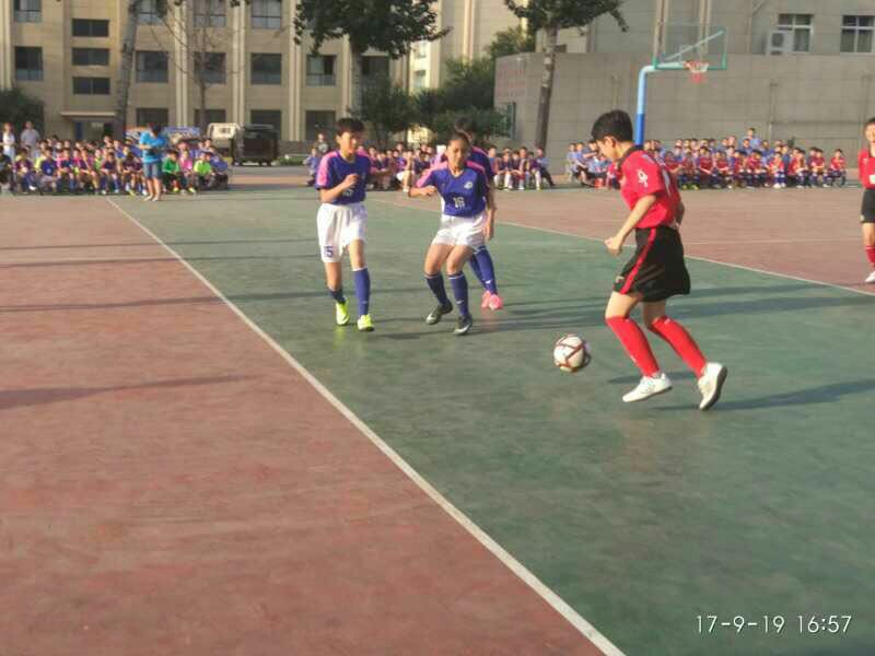 我校李云红校长为本届比赛开球后,比赛如火如荼开展。此次比赛共有初一初二年级19支队伍参加,其中男生164人,女生143人。此次足球联赛的精彩亮点在于男生、女生全员参与,深入贯彻全国青少年校园足球工作会议精神,一起通力合作为我们献上一场丰盛的足球大餐。本届足球联赛的另一亮点是女运动员成绩与男运动员成绩之和为班级成绩,本届新颖的计分方式加强了学生在比赛中的团结合作意识。
